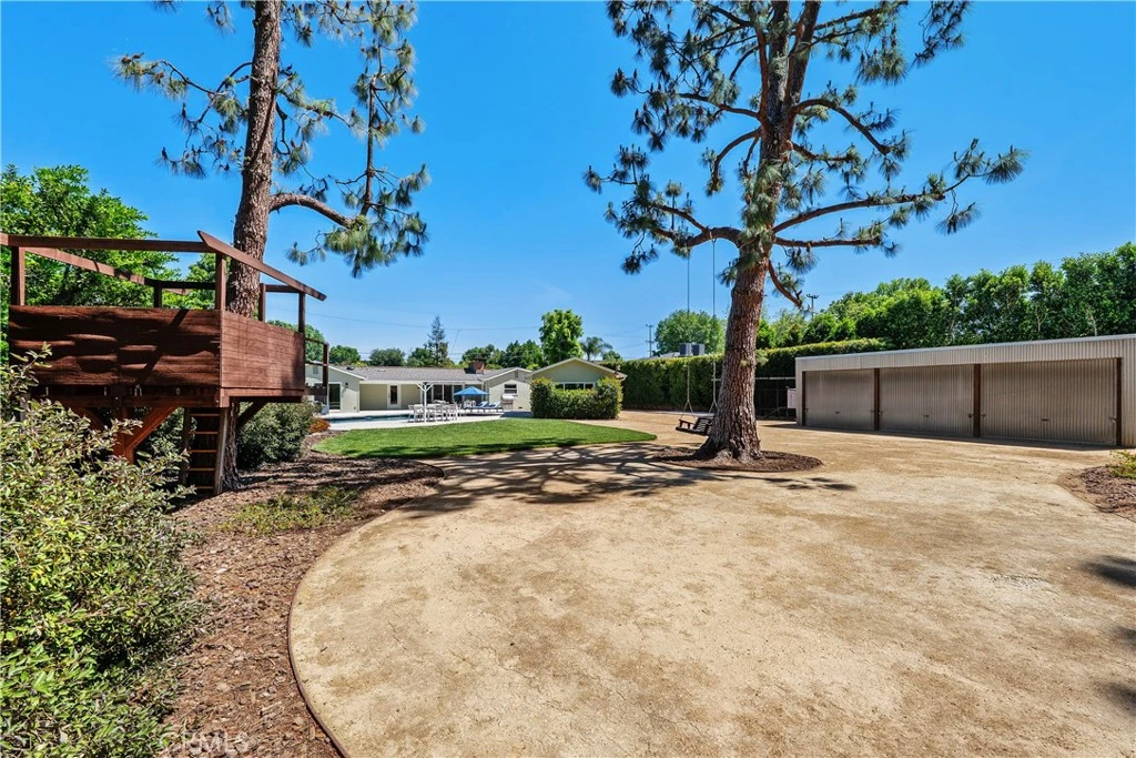 Welcome to a truly rare offering in Los Angeles—where expansive space, privacy, and limitless potential converge on an exceptional flat half-acre lot. Located in the coveted College Acres neighborhood in Woodland Hills. This impressive 100' x 220' property features double electric gates, a circular driveway, and convenient rear yard access, creating both presence and privacy. The beautifully maintained main residence exudes classic ranch-style curb appeal and offers approximately 1,924 square feet of thoughtfully designed living space with three bedrooms and three bathrooms. Complementing the home is an additional pool house/office of approximately 350 square feet, easily convertible into an ADU for added flexibility or income potential. A custom oversized front door welcomes you into a spacious living room highlighted by a fireplace, soaring cathedral wood ceilings, and rich wood flooring. The updated kitchen boasts granite countertops and a breakfast bar that opens seamlessly to a stunning dining room featuring a dramatic floor-to-ceiling brick fireplace, built-in grill, and charming window seat—perfect for memorable gatherings. The primary suite is a serene retreat with dual closets featuring built-ins, a skylight that fills the room with natural light, and a beautifully renovated bathroom complete with double sinks, quartz countertops, and an oversized shower. Wide-plank oak floors, newer doors and windows, and sliding glass doors throughout the home further enhance the bright, airy atmosphere. Step outside to a covered porch and enjoy quintessential California living. The backyard oasis features a PebbleTec pool with a Baja bench and built-in spa, ideal for both relaxing weekends and entertaining under the sun. A large grassy yard, whimsical treehouse, and metal three-car garage add even more appeal. What truly sets this property apart is its remarkable development potential. This is a rare opportunity to expand the existing home, build a custom estate, create a multi-generational compound, or develop multiple residences. Whether you envision a forever family home, a private estate with room to grow, or an exceptional investment opportunity, this property offers unmatched versatility in one of Los Angeles’ most desirable areas. Cherished by only two owners over the last 76 years, opportunities like this are exceedingly rare. Live in it, expand it, or build something extraordinary—this is a once-in-a-generation offering.