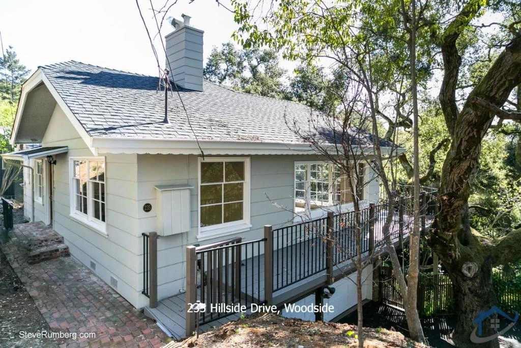 Nestled under Woodside's heritage oaks, this 1929 Woodside Glens retreat offers a rare blend of vintage character, privacy, and views. Spanning approximately 2,200 sq. ft. on a nearly 0.5 acre lot, this home features verdant scenery and a wrap-around deck to take it all in. The main level boasts a large, open-beam living room anchored by a cozy wood-burning stove, and is surrounded by windows which bring the natural beauty of the Glens inside. The floor plan includes a vintage kitchen, a dining area overlooking the oaks, and two bedrooms -- one featuring its own fireplace.  Central air-conditioning provides year-round comfort. Upstairs is a versatile loft with a storage area. The lower level features a large bedroom with a bathroom and shower, an oversize 2-car garage, plus driveway space for 2 additional vehicles. With the large lot, an ADU is possible (buyer to confirm with the town). Located in the district for top-rated Woodside Elementary (K-8) and Woodside High, this home is moments from Woodside Village and offers a convenient commute to the entire Bay Area via Hwy 280. Experience the quintessential Woodside lifestyle in this timeless woodland sanctuary.
