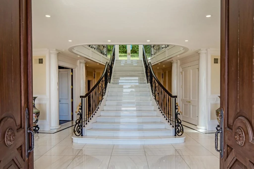 Extraordinary residence on 5.32 acres with opulence and European inspiration at every turn. Impeccably crafted by renowned builder Markay Johnson in 2014 on a private gated lane with gated driveway and sweeping views of San Francisco Bay. Lavish beauty throughout the home with hand-selected marble from Milan, elaborate millwork, Doric columns, intricate carvings, and gilded details. All-marble staircase with hand-forged railings leads to the upper level with formal living room, formal dining room, tremendous kitchen, family room, office, plus grand primary suite with 2 full baths. 3 luxurious bedroom suites plus large office and conference center make up the ground level. Breathtaking views from every room on both levels. Elevator in the main residence. 1-bedroom pool house and studio guest house, each with bath and full kitchen. Sparkling pool and spa plus fireplace terrace for idyllic entertaining in complete privacy.