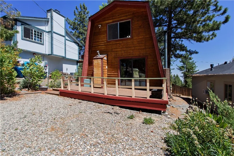 Welcome to 2068 Slippery Elm Rd, a stunning Gambrel Style Home nestled on the East Side of Wrightwood. This iconic mountain retreat offers the perfect blend of rustic charm and modern comfort, ideal for a weekend getaway or year-round living. Perched among majestic trees, this property boasts breathtaking views of the high desert, creating a serene and awe-inspiring backdrop for your daily life. The flat lot provides ample parking and versatile outdoor space, limited only by your imagination. Expansive front and rear decks seamlessly connect indoor and outdoor living, allowing you to fully embrace the mountain lifestyle. Step inside, and you'll be greeted by a spacious living room centered around a cozy fireplace, setting the tone for this exquisite home. The well-appointed kitchen serves as a natural divide between the living room and dining area, perfect for entertaining or intimate family gatherings. Modern conveniences abound, including an indoor laundry room with complimentary appliances. Indulge in the full bath's soaking tub, offering a luxurious retreat after a day of mountain adventures. Sliding doors at both the front and back of the home invite the crisp mountain air inside, while natural light floods the interior, bringing the outside in. Ascend the beautifully crafted stairs to discover two lofty bedrooms on the upper level. The primary bedroom is a true highlight, featuring an elevated deck that showcases the desert panorama in all its glory. With its prime location, 2068 Slippery Elm Rd offers the best of Wrightwood living. Surrounded by the soothing sounds of whispering pines and bathed in natural light, this home truly captures the essence of mountain living. Don't miss this opportunity to own a piece of Wrightwood paradise!