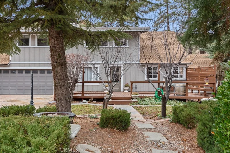 Wrightwood’s finest views and neighborhoods are showcased at 800 Mountain View Ave. This charming multi-level home on a level lot offers 4 bedrooms and 2 baths. Driveway and attached garage parking are available. The main entry opens from a spacious front deck into a living room adjacent to the kitchen and dining area. A few steps down is a main-level bedroom with backyard access and the indoor laundry area. A unique gaming/mini-loft provides a flexible space for entertaining. Upstairs features a second primary-style bedroom with its own in-suite fireplace. Two additional bedrooms are accessed from the east stairway; one of these includes a 3/4 bathroom. The backyard captures the Mountain View name with pine-tree surroundings and scenic mountain backdrop. Outdoor features include a basketball hoop, barbecue area, and equipment suitable for an above ground pool perfect for relaxing and entertaining. Electricity usage is affordable year your thank to the solar array installation. Leased solar and battery backup are assumable by the buyer.