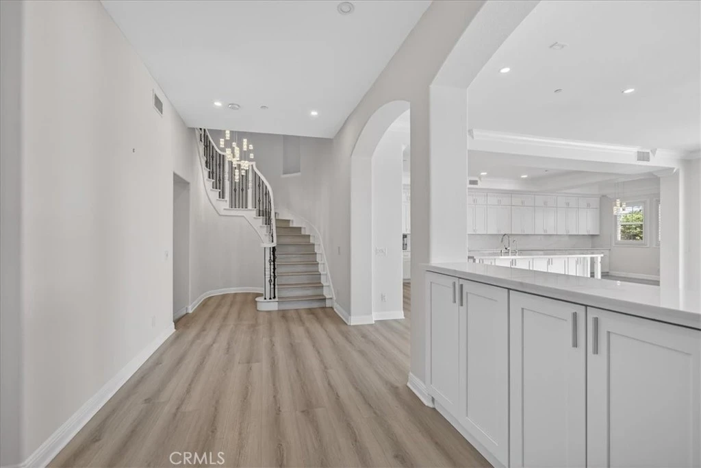 Welcome to this exquisite Toll Brothers residence in the prestigious Heritage at Vista Del Verde, adjacent to Black Gold Golf Course. Recently expanded to approximately 3,832 sq ft (permitted), this home offers 5 bedrooms and 5.5 baths, with every bedroom en-suite, and features hard surface flooring throughout with no carpet. Set on one of the community’s largest and most desirable private corner lots, the home captures breathtaking panoramic views of city lights, rolling hills, Catalina Island, sunsets, and even Disneyland fireworks. Designed for seamless indoor-outdoor living, the open-concept main level features a stunning family room with fireplace, custom built-ins, and expansive glass doors opening to a covered patio and spacious grounds. A chef’s kitchen anchors the space with an oversized island, contemporary quartz counters, stainless steel appliances, walk-in pantry, and generous dining area—perfect for both everyday living and entertaining. The first floor also includes a private bedroom suite, laundry room, and powder bath. Upstairs, the elegant curved staircase leads to a luxurious primary suite with a private view balcony, custom closet, spa-inspired bath, and dual vanities. Two additional en-suite bedrooms and a versatile loft/ 5th bedroom with en-suite bath, complete the upper level, along with a second laundry room for added convenience. Additional highlights include three refrigerators, two EV chargers, and a garage with extensive overhead storage (appx. 750 sqft) . A rare residence that perfectly blends luxury, comfort, and location. Welcome Home!