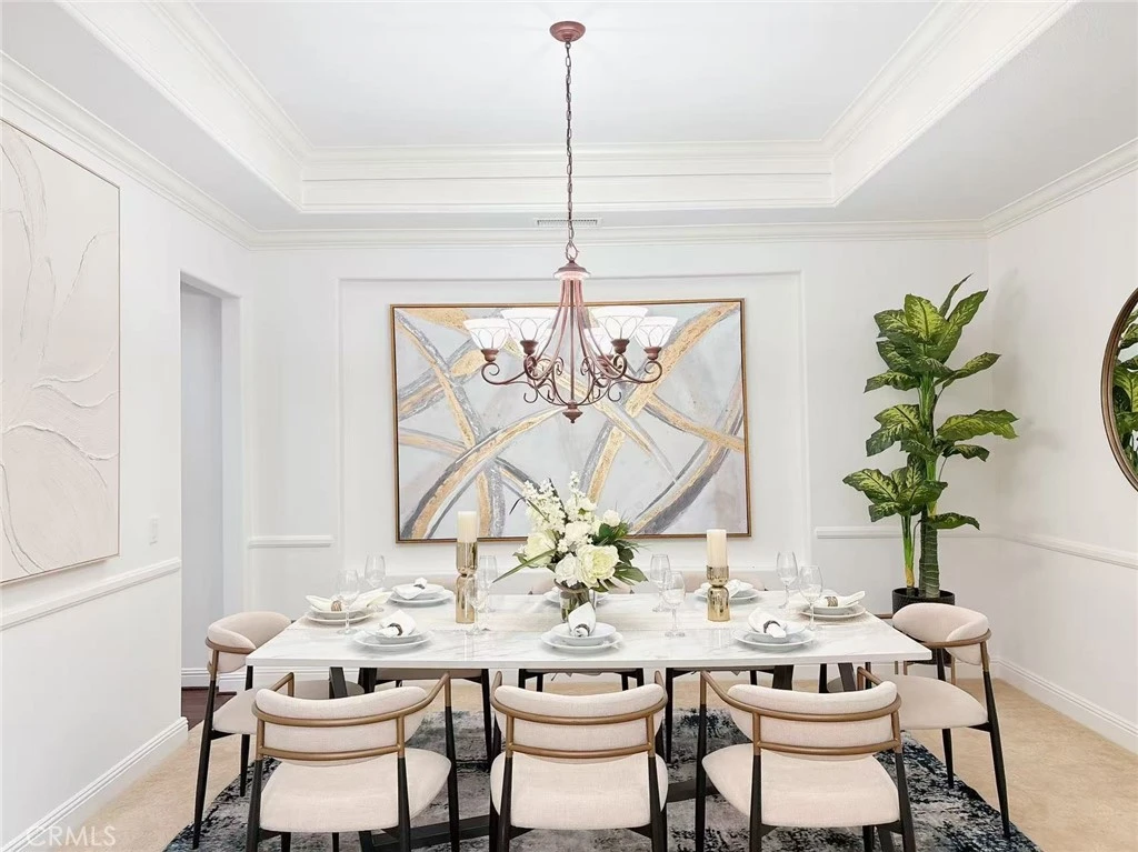 View, view, view, city lights view — you can enjoy the fireworks every single night. A stunning Toll Brothers Gulfstream model home offering breathtaking 180-degree city light views in the prestigious Saratoga neighborhood of the Vista Del Verde Golf Community. This luxurious 2005-built residence offers approximately 4,289 square feet of refined living space on a generously proportioned yet manageable 7,500 sq ft lot. It features 4 bedrooms + bonus room and 4.5 bathrooms, perfectly situated on a peaceful cul-de-sac. Recently refreshed and move-in ready, the bright, inviting interior has been freshly painted throughout. Brand-new high-quality carpet flows across the entire second floor, while the gourmet chef’s kitchen now shines with new quartz countertops and high-end stainless steel appliances, including a large center island with breakfast bar. Downstairs, artisan-laid hand-scraped and distressed hardwood floors add warmth and elegance that beautifully complements the updated finishes. The open-concept floor plan is ideal for both everyday living and entertaining. It includes a convenient downstairs bedroom suite with its own full en suite bath — perfect for guests, extended family, or a private home office — along with a formal living room, formal dining room with butler’s pantry, a charming courtyard, and custom window coverings. The massive family room features a cozy fireplace and custom media built-ins. Outside, the professionally landscaped backyard is the perfect size for comfortable entertaining and everyday enjoyment — not too large to maintain, yet spacious enough for a pool-sized area if desired. It includes a grassy play area, an outdoor kitchen with stainless steel appliances and counters, and ample room for relaxation or future pool installation, all while enjoying the stunning city views. Upstairs, the opulent primary suite is a true retreat, complete with a spacious en suite bathroom, a huge walk-in closet, and a private balcony showcasing truly amazing sunset and 270-degree panoramic city light views. The luxurious primary bath features dual vanities with a large soaking tub and travertine floors, and a frameless shower door. Additional highlights include a 3-car tandem garage with ample storage space and a thoughtful layout that maximizes comfort and functionality. No HOA and Meloo Roos.