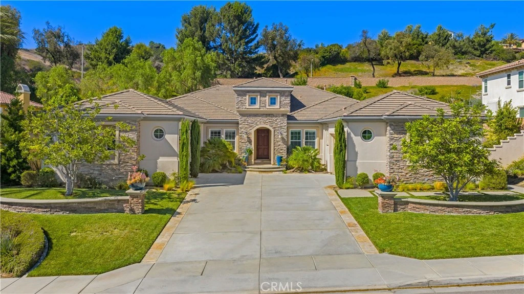 A Toll Brothers single-story luxury home situated in a tranquil community in the heart of Yorba Linda. The impressive great room features an entertainment bar, fireplace, and an expansive open-concept design. The upgraded chef’s kitchen is ideal for hosting, with a large central island, six-burner cooktop, double oven, oversized refrigerator/freezer, and walk-in pantry. The primary suite includes a fireplace flanked by custom built-in cabinetry, a stone-accented en-suite bathroom with dual vanities, a separate soaking tub, and a walk-in shower. The office with custom cabinetry is conveniently located near the entrance. A separate wing offers two en-suite bedrooms, an open media room, and a spacious laundry area, completing the main residence. An attached guest casita with a living area, full bathroom, and walk-in closet provides an excellent space for visitors or a home theater. The highly-rated school district, with a 9-9-9 rating, is just 0.6 miles from Yorba Linda High School.