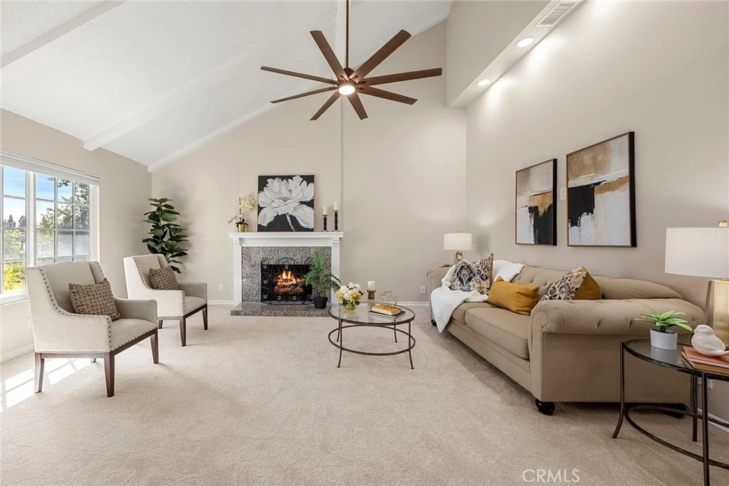 Perched on a spacious 13,500 sq ft lot in a tranquil, elevated setting, this remarkable estate commands 180-degree panoramic views spanning glittering city lights, Disneyland fireworks and rolling hills beyond. A rare offering of versatility, the residence features 7 bedrooms and 5 bathrooms, and an office, thoughtfully designed for both luxurious living and multi-generational flexibility. A grand arrival begins through 8-foot custom double steel doors, opening to a light-filled interior defined by soaring wood-beamed vaulted ceilings. The home’s design balances warmth and sophistication, with curated spaces ideal for both intimate living and grand entertaining. The main level showcases a newly remodeled chef’s kitchen, appointed with premium granite countertops, custom real-wood cabinetry, double ovens, a four-door refrigerator, garden window, and sleek black stainless-steel appliances. Flowing seamlessly into the living room, the space is enhanced by an upgraded fireplace and framed by expansive windows and California sliding glass doors that open to the outdoor entertaining terrace. A junior ADU offers exceptional flexibility, complete with its own bedroom, walk-in closet, designer bathroom, full kitchen, and living area—perfect for extended family, guests, or additional income potential. Resort-style outdoor living awaits, featuring a custom pool with dramatic rock waterfall, 16-foot slide, and multicolor lighting, a gas fire pit, covered patio, built-in BBQ station with bar seating, and a 7-person Cal Spa with over 50 jets—an entertainer’s dream set against a breathtaking backdrop. The primary suite is a serene sanctuary, offering vaulted ceilings, a private fireplace, sitting area, and spa-inspired bath with a two-person soaking tub, custom shower, and dual sinks with granite counters. California sliding doors open to a covered private balcony with spiral staircase access to the pool level. A second primary bedroom with en-suite jetted spa bath provides additional luxury accommodation. Additional highlights include three designer fireplaces, 14 ceiling fans, fully upgraded bathrooms throughout, 33 owned solar panels with micro-inverters, SolarEdge monitoring, EV charging station, custom two-level work shed, RV/boat parking, and no rear neighbors for enhanced privacy. Located within the coveted Chateau Hills community, this exceptional residence offers a rare combination of luxury, privacy, and iconic Southern California views.