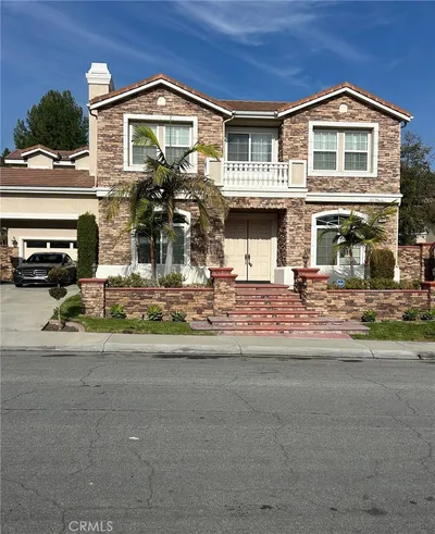 Every home has a story, and this one begins with privacy, space, and timeless architectural character. Set back from the street within the original, pristine Montecito community, this exceptional residence is tucked inside a small, exclusive pocket of luxury homes built in 1983—known for large lots, distinctive design, and no HOA. A front courtyard with a covered estate brick walkway leads to a grand double-door entry. Soaring cathedral-height windows fill the home with natural light and reveal sweeping views that make the outdoors part of everyday living. Nearly every window captures a scenic outlook, and all windows and sliders are upgraded to new double-pane glass, including cathedral view windows. The formal living room is anchored by a floor-to-ceiling Eldorado stacked stone fireplace. The formal dining room flows seamlessly between the living room, family room, and kitchen—ideal for hosting gatherings surrounded by serene backyard views. The chef’s kitchen offers storage galore with custom cabinetry, quartzite countertops, high-end stainless-steel appliances, warming drawer, massive peninsula seating six, and a six-burner cooktop island. An in-kitchen dining cove is complemented by a butler’s pantry with coffee station and microwave. The family room features a stacked stone fireplace, wet bar, and wine cooler. A main-floor bedroom and bath with direct outdoor access provide flexibility for guests or multigenerational living. Upstairs, the primary suite offers vaulted ceilings, sitting area, built-in entertainment center, refrigerator, and elevated views of the landscaped grounds. The spa-inspired bath includes a freestanding soaking tub, oversized dual-head shower, double vanity, walk-in closet, private commode, and private deck. Three additional bedrooms feature vaulted ceilings, architectural accents, custom windows, and scenic views. Outdoors, enjoy a flat, park-like oasis with mature landscaping, PebbleTec pool and spa, outdoor fireplace, fenced grounds with self-closing gates, and generous space to relax and entertain. Upgrades include a concrete and steel roof replaced five years ago, upgraded electrical panel, owned solar with 37 panels and two Tesla Powerwall batteries, new flooring, landscape lighting, water softener, EV charging, detached storage shed, and a three-car garage with additional space for a workshop or home gym. Located on a private cul-de-sac with RV parking or potential ADU options—create your Yorba Linda dream, your way.