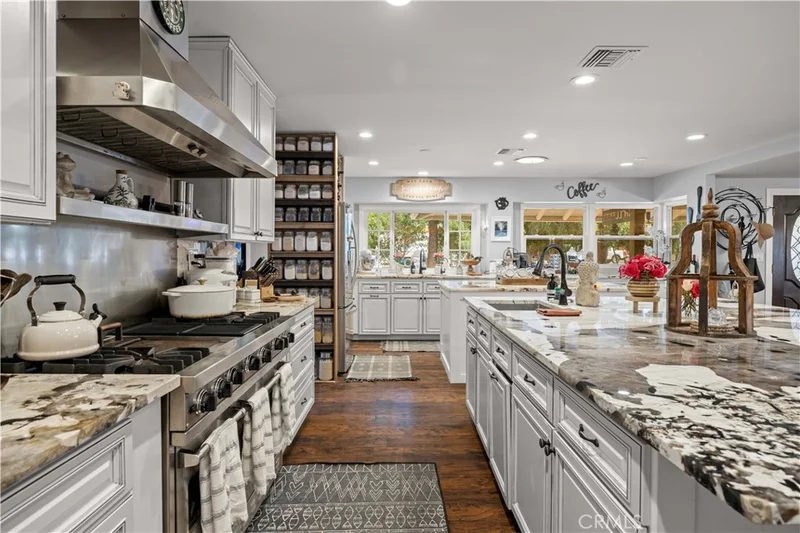 Price Improvement! Incredible opportunity to own this rare 1-acre Yorba Linda property with expansive entertaining spaces and a beautifully updated kitchen. Situated on an expansive lot, this unique property offers exceptional space, privacy, and versatility rarely found in the area. The expansive kitchen features two islands, two sinks, abundant counter space, and generous storage, ideal for entertaining and everyday living. The beautifully landscaped grounds showcase mature fruit trees, a personal garden, quaint seating areas, a resort-style pool, and a large barn/shop, creating a private, estate-like environment with ample space for gatherings, your RV and/or your boat. Two downstairs rooms are currently configured as a bar and a therapy room, offering flexible options for entertaining, wellness, or work-from-home use. Recent improvements include new ABS piping. Solar includes two systems — one owned and one leased. Buyer to assume leased solar at approximately $100/month. A truly special property combining upscale living with rare lot size and exceptional outdoor amenities.