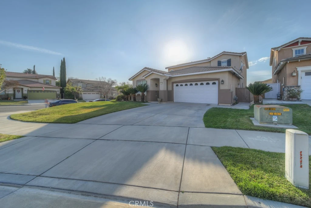 Welcome to this beautiful two-story single-family residence located in the highly desirable Chapman Heights community of Yucaipa. This spacious home features 5 bedrooms and 3 full bathrooms, including 2 bedrooms and a full bath conveniently located on the main level, ideal for guests, multigenerational living, or a home office. This home offers high ceilings, and a bright open floor plan ideal for both everyday living and entertaining. The inviting family room offers a cozy fireplace and flows seamlessly into the open-concept kitchen, which features tile flooring, quartz countertops, modern blue cabinetry, stainless steel appliances including dishwasher, microwave, and stove, and an oversized island with breakfast counter—perfect for connecting with family and guests while cooking. The primary suite includes a private balcony overlooking the valley and surrounding mountains, creating a peaceful retreat. Additional highlights include a dedicated interior laundry room, direct access to the attached two-car garage with finished walls, and is well-maintained throughout. Situated in a well-established and highly sought-after neighborhood, this home is part of the Chapman Heights master-planned community, offering outstanding amenities such as picnic areas, outdoor cooking and gathering spaces, playgrounds, a dog park, a jogging track, biking and hiking trails. Located near the Yucaipa Valley Golf Club, and just minutes from Yucaipa Regional Park, this home is surrounded by scenic foothills that make the area highly desirable. Low HOA. Buyer to perform their own due diligence and verify all information.