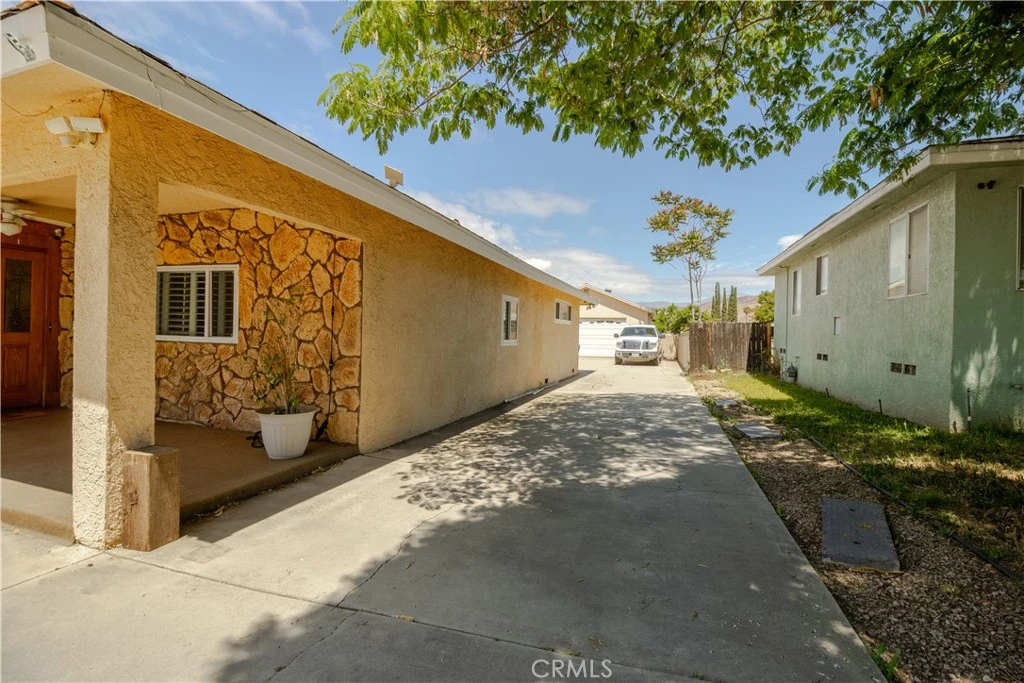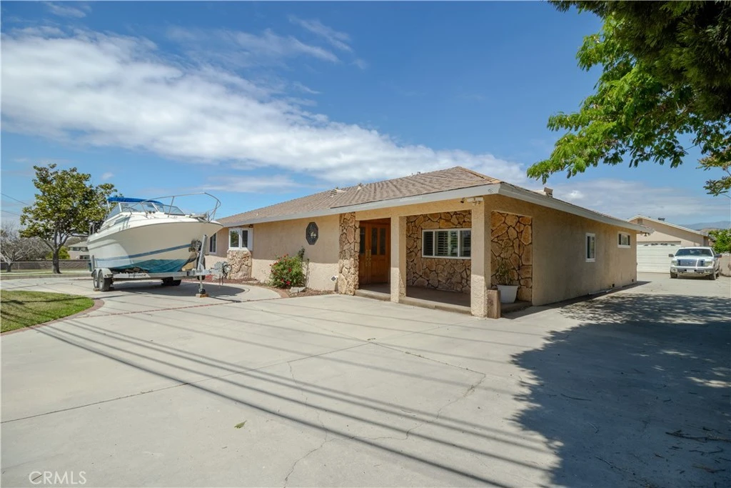 Bring your work truck home with ease at this versatile single-story home on a flat, usable 1/3-acre lot. With two long driveways, pull-through access, detached oversized tall 2-car garage, and abundant off-street parking, this property is ideal for buyers needing room for work vehicles, RVs, trailers or boats. This 4-bedroom, 2-bath home features a spacious kitchen and dining area, huge family room, indoor laundry, built-ins, and extensive storage throughout. Additional amenities include dual-pane windows and doors, plantation shutters, ceiling fans, Brazilian wood laminate flooring, oversized central HVAC and two whole-house fans. The backyard offers a separate covered patio, pool and spa, putting green, outdoor shower, fenced dog yard, and separate garden or play area.