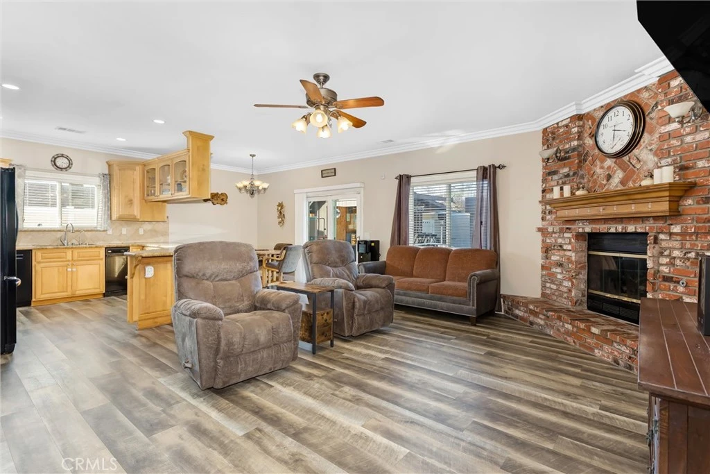 Here's an adorable home in Yucaipa, with an amazing backyard. Built in 2006, this single storied home has 3 bedrooms, and 2 bathrooms with 1505 square feet of living space. The family/living room is an open floor plan with a high ceiling. It showcases a brick fire place, crown molding, and ceiling fan. The kitchen has granite counter tops, alder cabinets, tile flooring, and a walk-in pantry. The main bedroom is decently sized and measures at 14'x17', with a large walk-in closet. The other bedrooms are sized at 11'x12'. In the backyard you'll find a salt water pool, covered bar, and media center for a complete entertainers dream, and there's even his/hers bathrooms out back. The home has two solar systems. One system is paid off, and other one is leased with two Tesla batteries through SunRun. The gated side yard is perfect for a small tow trailer/vehicle.