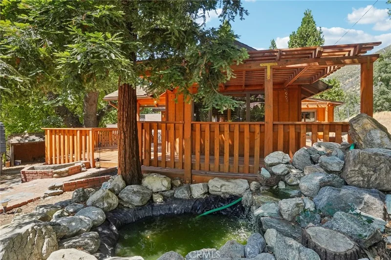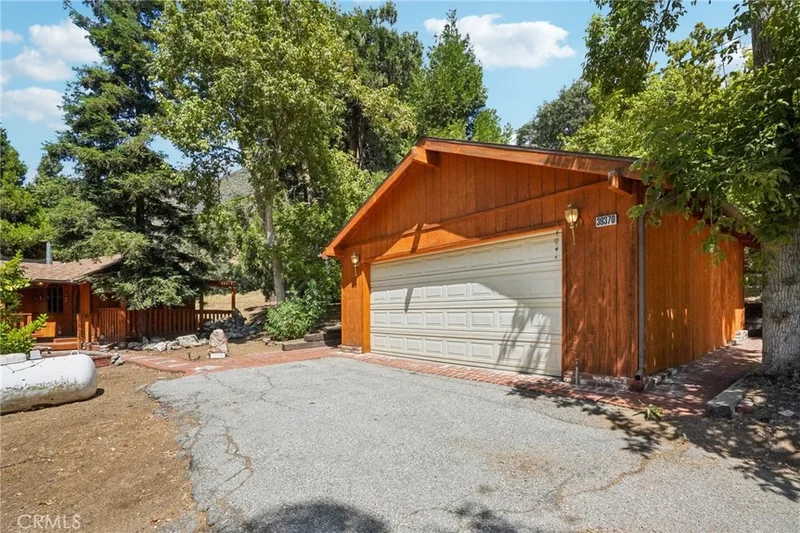 Absolutely charming Oak Glen cabin near iconic apple orchards, boutique shops, and quaint restaurants. This well-maintained property features 1 bedroom and 1.75 bathrooms in 1,052 sq. ft. of living space, all situated on a private 15,300 sq. ft. lot with plenty of space for home expansion if desired. Also offering a detached 2-car garage, a 1-car carport, and driveway parking for 4 additional cars - great for guests! A lovely brick walkway with planters adorns the front, leading to the front deck which wraps around the home to the back. Inside, you will find beautiful vaulted wood-beamed ceilings, wooden plantation shutters, central A/C & heating, and newly installed aluminum flex ducting (rodent resistant) under the home! The home boasts a spacious living room complete with wood-burning stove. The living room flows into the kitchen with wood cabinetry, tile counters, and high-end Bosch Stainless Steel appliances including the cooktop with vent, a built-in oven, and microwave. The Samsung refrigerator is also included with the sale of the home! The kitchen opens to the light and bright dining room with double French-doors that opens to the front deck, and there is a convenient laundry closet in the kitchen with included washer and dryer. This home has a large bedroom with glass slider to the back deck, a large private ensuite with vanity space, a walk-in shower, and the ideal cedar-lined walk-in closet with built in storage. A full-size bathroom completes the interior floor plan. Relax and entertain on the back deck with stunning mountain and forest views, and there is also a shed for extra storage! This home is truly a gem! Bask in the best of mountain living while still being close to shopping and services, also the US Forestry Service Station is located next door! Do not miss this one!
