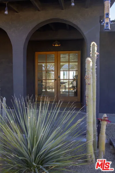 Discover a desert sanctuary thoughtfully designed to harmonize with its natural surroundings. This custom retreat showcases non-toxic, earth-derived materials, seamlessly blending modern living with the beauty of the landscape. Every detail has been carefully considered, from hand-applied lime plaster walls to custom vanities throughout. The home features fully owned solar panels for energy efficiency and long-term peace of mind. Just off the garage, a versatile flex/office space with its own mini-split AC and heating system offers year-round comfort, perfect for work, fitness, or creative use. The fully fenced property, complete with rattlesnake fencing, provides ample space for families and pets to roam freely. Young Palo Verde, Eucalyptus, and Joshua trees are beginning to take root, adding to the property's natural charm and future privacy. Unwind under the desert stars in the hot tub, soaking in breathtaking views and sunsets over Goat Mountain. This home balances privacy and accessibility - remote enough for tranquility, yet just a short drive to town. A rare opportunity to experience desert living at its finest. I'd love to show you this special home!