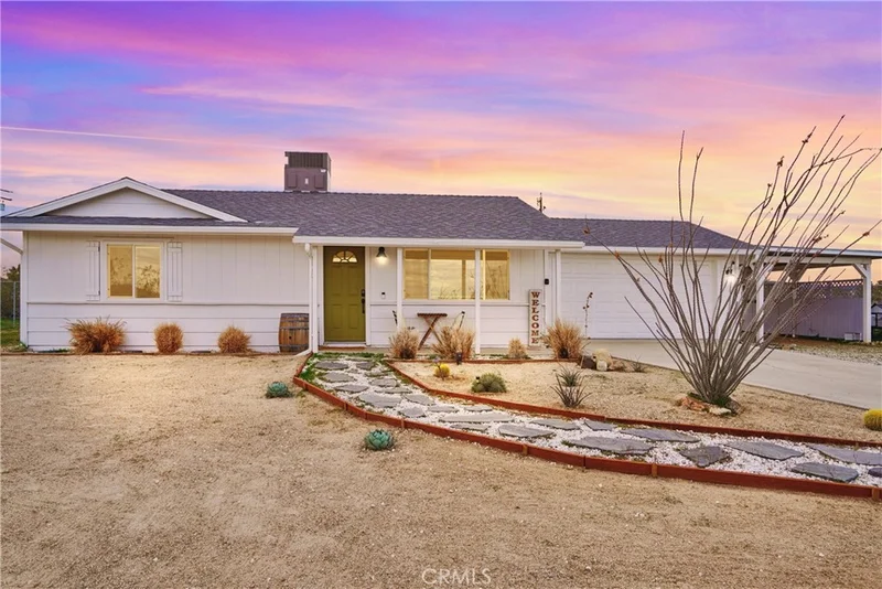 Charming 2-Bedroom Home on Expansive 20,000 Sq. Ft. Lot in Yucca Mesa! Discover this beautifully updated 2-bedroom, 1-bath home situated on a spacious nearly half-acre lot in the sought-after Yucca Mesa area! Boasting 1,008 sq. ft. of living space, this fully fenced property offers both privacy and charm. Step inside to a bright and open living area featuring stylish wood-look tile flooring throughout. The thoughtfully designed open-concept kitchen showcases quartz countertops, sleek cabinetry, a stove, microwave, and ample storage. Both bedrooms are generously sized with large closets, while a sliding glass door leads to a vast backyard, perfect for relaxing or entertaining. The outdoor space is an oasis for enjoyment, complete with a fire pit, horseshoe pit, seating areas, a chicken coop, and a storage shed. The property also includes an attached 2-car garage with direct access plus a carport for additional parking. Recent upgrades include a new septic tank, roof, water heater, and HVAC system (installed in 2020). Whether you're looking for a primary residence, investment property, or vacation home, this gem is a must-see!