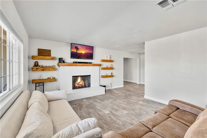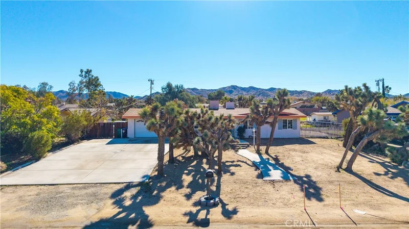 Affordable 4 Bedroom, 2 Bathroom Home with Potential FIFTH BEDROOM on Nearly Half an Acre in Central Yucca Valley! This spacious and well-maintained home offers unbeatable value with 4 bedrooms, 2 bathrooms, plus an additional room with a closet that can easily function as a FIFTH BEDROOM. Located in the heart of Yucca Valley, this property sits on just under a half-acre lot and features a fully fenced backyard with a convenient drive-thru gate—perfect for RV or toy storage. An oversized concrete driveway provides ample off-street parking. Inside, the home boasts a large living room with a cozy wood-burning fireplace, beautiful tile flooring throughout the main living spaces, and luxury vinyl plank in the bedrooms. The kitchen has been fully remodeled and features custom finishes including a stunning countertop-to-ceiling backsplash, stainless steel appliances, ample cabinetry, and generous counter space. The spacious primary bedroom offers dual closets and privacy, being located far from the other bedrooms. Both bathrooms have been updated with beautiful new tile and finishes. All secondary bedrooms are generously sized, and the home offers additional hallway and linen closet storage. This property is equipped with dual cooling, offering both central HVAC and a ducted evaporative cooler to help you stay comfortable and energy-efficient year-round. There is also an affordable solar power purchase program, making the electricity more affordable. This home even features an attached 2 car garage with laundry hookups. Out back, you’ll find a large covered patio and a flat, usable yard that’s perfect for entertaining or relaxing. There’s also a Tuff Shed for added storage. Located close to schools, restaurants, and shopping, this home is move-in ready and offers size, functionality, and value. Homes with this square footage, bedroom count, and price point are hard to come by—schedule your showing today before it’s gone!