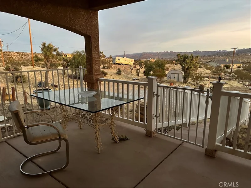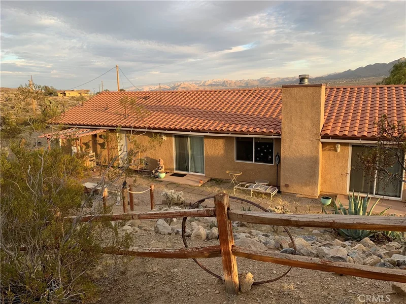 Discover a captivating city lights view from this 4-bedroom, 3-bath home nestled in a tranquil cul-de-sac freshly paved, boasting a wilderness panorama view. This private oasis, was built in 2004, spans .85 acres . The entrance is nothing short of dramatic, providing the perfect perch to savor both sunrises and sunsets. Featuring a tiled roof and cool tiled floors throughout, the home exudes a refreshing ambiance. The spacious kitchen offers a scenic backdrop, complete with double ovens. A fireplace graces the living room, while ceiling fans adorn every room. The dining room, with glass sliders leading to the rear yard, presents a dramatic view for your dining pleasure. The expansive master suite includes a generous walk-in closet and glass sliders, inviting in the cool morning and evening breeze. A second master suite, with its own full bath, also opens up to the rear yard through glass sliders. The oversized 2-car garage is impeccably finished with epoxy floors, complemented by a concrete driveway. A green house in the rear garden adds to the property's charm. With numerous amenities to offer, this one-of-a-kind residence is a rare find. Don't miss out on the unparalleled location and breathtaking views! Explore the captivating beauty of Joshua Tree National Park and indulge in a delightful shopping experience in the charming town of Yucca Valley. Immerse yourself in the stunning landscapes of Joshua Tree National Park, located in close proximity.