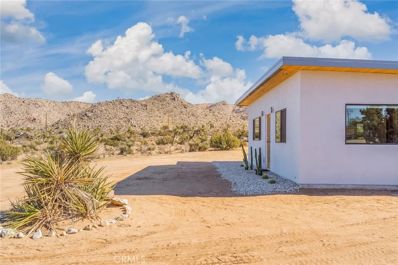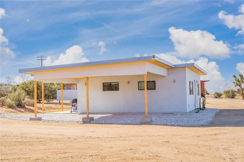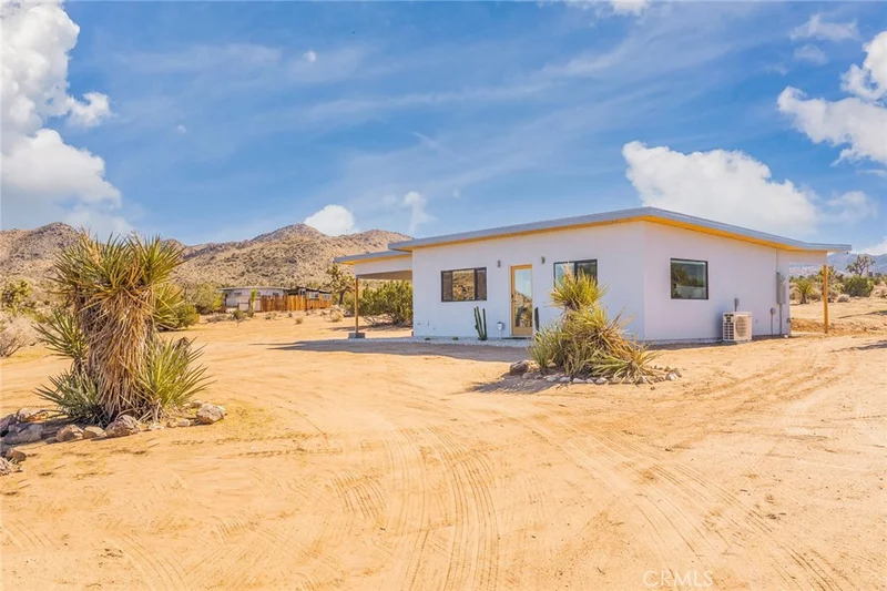 Back on the market at no fault to the home! Quintessential Desert Star: Complete Rebuild – Stripped to Studs, Fully Remodeled, Fully Permitted, New Plumbing, New Electrical, New Roof, Polished Concrete Floors, New Sheetrock, New Stucco, ALL NEW SURFACES and APPLIANCES. Combined with careful craftsmanship and high-end design details, you'll find why this home makes for a great vacation rental or cozy primary residence. Picturesque views of the desert mountains and protected Joshua Trees out of every window! True beauty lies in the acre of land the home sits on. The natural desert landscape is left for those who appreciate its natural state and for its new owners to explore and feel the tranquillity of this special place on earth. This supreme location offers seclusion but not total isolation.