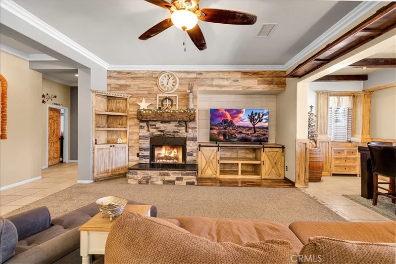 Warmth, character, and comfort define this beautifully appointed home in the desirable Country Club area of Yucca Valley. Offering 2,225 square feet of thoughtfully designed living space, this residence blends rich wood accents, stone elements, and custom finishes to create an inviting western-inspired aesthetic ideal for desert living. The open floor plan is perfect for both everyday living and entertaining. A formal dining area complements the spacious living room, while the well-appointed kitchen flows seamlessly into the main gathering spaces. Unique finishes on the cabinetry and doors enhance the home’s distinctive style. This four-bedroom home includes a generous primary suite featuring a walk-in closet, dual vanity, and a soaking tub designed for relaxation. Three additional bedrooms are well-sized and served by two additional bathrooms with convenient access from the living areas and bedrooms. An additional flex space offers versatility and could easily function as a home office, hobby room, or potential fifth bedroom. Step outside to your private backyard retreat. The covered patio overlooks a beautifully designed built-in pool with a sit-and-spin spa—perfect for enjoying peaceful desert evenings under the stars. Upgraded block wall fencing provides enhanced privacy, and the cul-de-sac location offers minimal traffic and added tranquility. Additional highlights include an indoor laundry room, a finished three-car garage and easy access to the highway on the west end of Yucca Valley. This is more than a house—it’s a place to truly feel at home. Schedule your private showing today.
