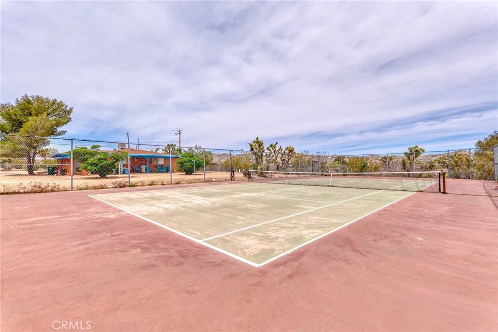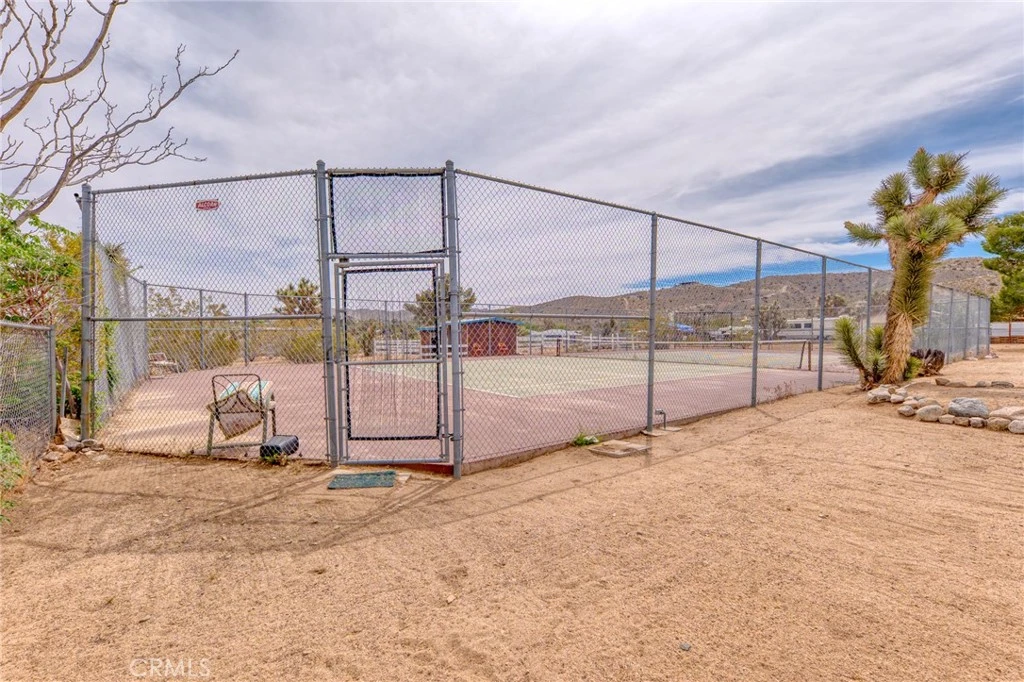 Charming Southwest style retreat set on over an acre of beautifully landscaped desert terrain, offering a rare combination of privacy, versatility, and lifestyle. Surrounded by mature trees and natural desert beauty, this fully fenced property stands out with its full size tennis court. easily convertible to a pickleball setup. creating incredible potential for personal enjoyment or a highly desirable short term rental feature. Equestrian enthusiasts will appreciate the covered horse riding arena, making this property ideal for those seeking space for animals, recreation, or a unique income producing opportunity. Inside, the home is warm and inviting with a spacious layout featuring two bedrooms plus bonus room areas perfect for an office, guest space, or creative studio. Wood style flooring, complemented by a charming country kitchen with natural gas appliances. Conveniently located in town with easy access to shopping and dining, yet offering the feel of a private desert escape, this property delivers the best of both worlds. A truly special opportunity with endless potential for lifestyle living or investment.