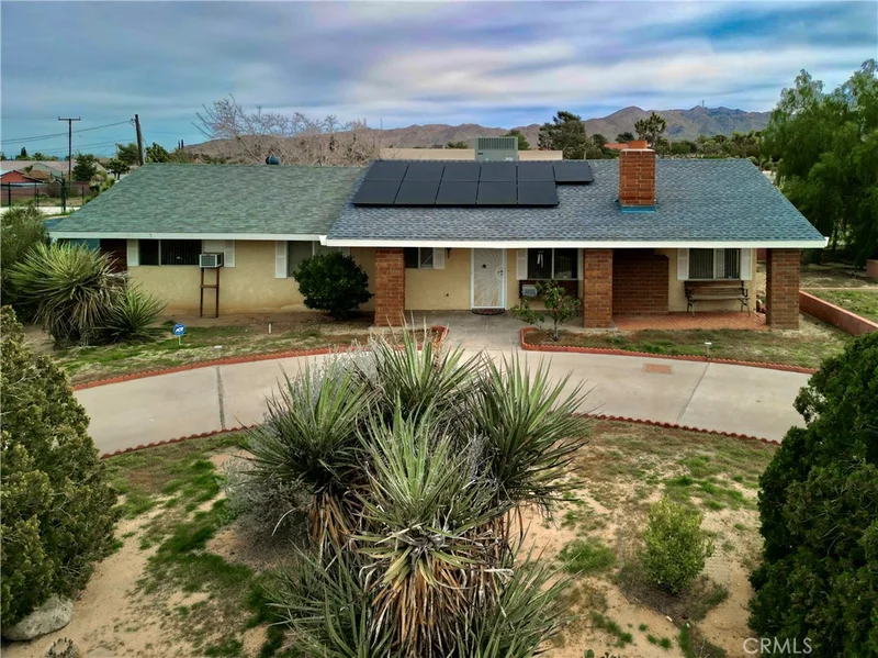 Discover this spacious Yucca Valley home offering over 2,400 sq ft of comfortable living space on a corner lot of more than ¾ of an acre. Located in the Sky Harbor area, this 4-bedroom, 3-bathroom property features a desirable layout, including two primary bedrooms with their own private baths—perfect for multi-generational living or guest accommodations. Inside, you’ll find a warm and inviting living room with a cozy fireplace, a formal dining room, and a charming breakfast nook for casual meals. Wood and tile flooring flow throughout the home, adding both style and durability. The convenient indoor laundry room and attached garage provide everyday practicality. Recent upgrades include a newer HVAC unit, a new shed for extra storage, and a low solar lease to help keep energy costs manageable. The expansive, fully usable lot is complete with a circular driveway, chain link fencing, and plenty of space for RV parking, outdoor entertaining, or future possibilities. Don’t miss this opportunity to own a versatile and well-appointed home in desirable Sky Harbor!